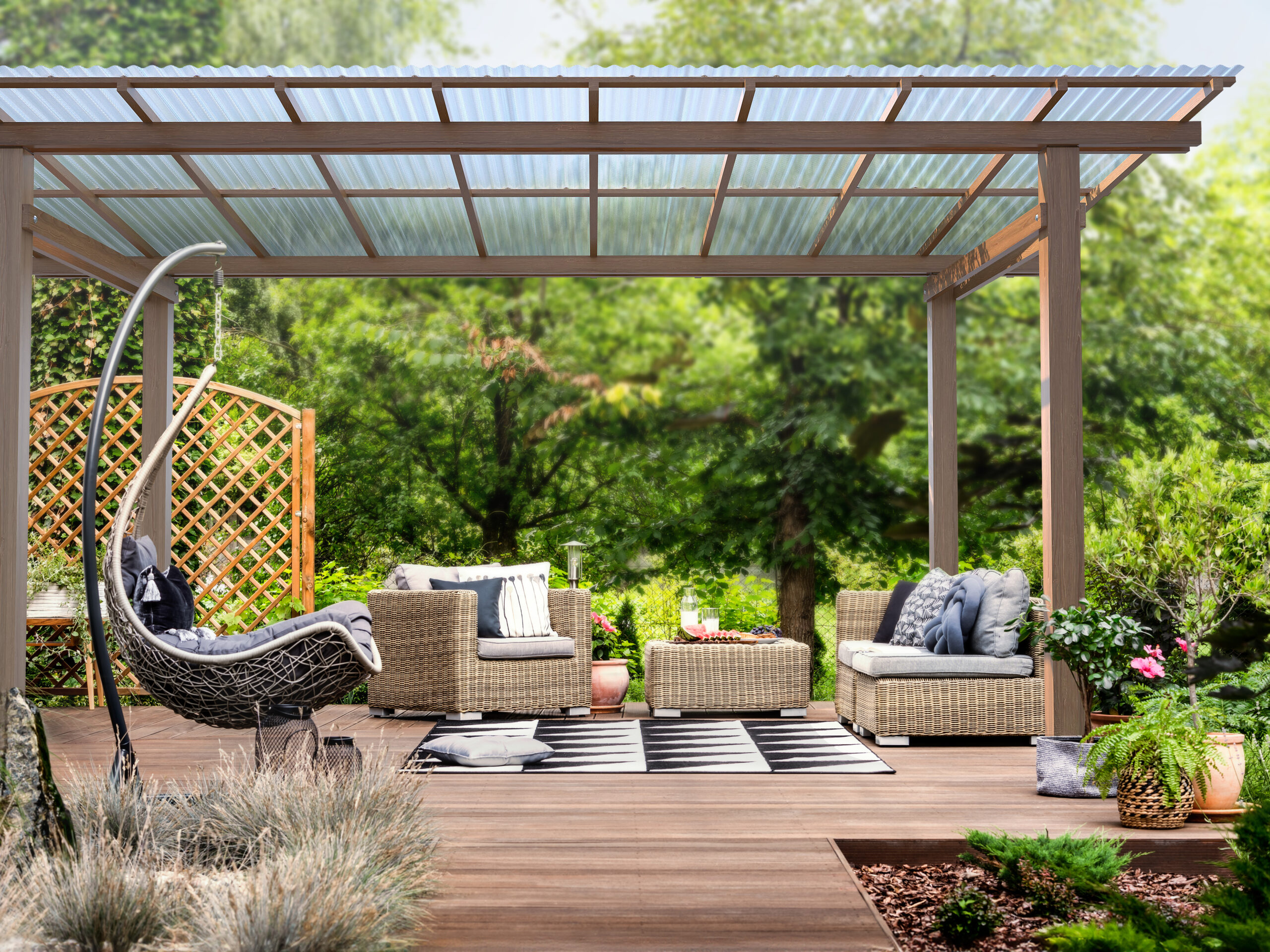Ochrona UV: Płyty blokują 99,9% promieniowania UV, chroniąc zarówno użytkowników, jak i materiały znajdujące się pod zadaszeniem przed szkodliwym działaniem słońca.